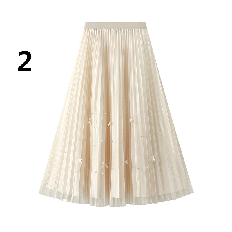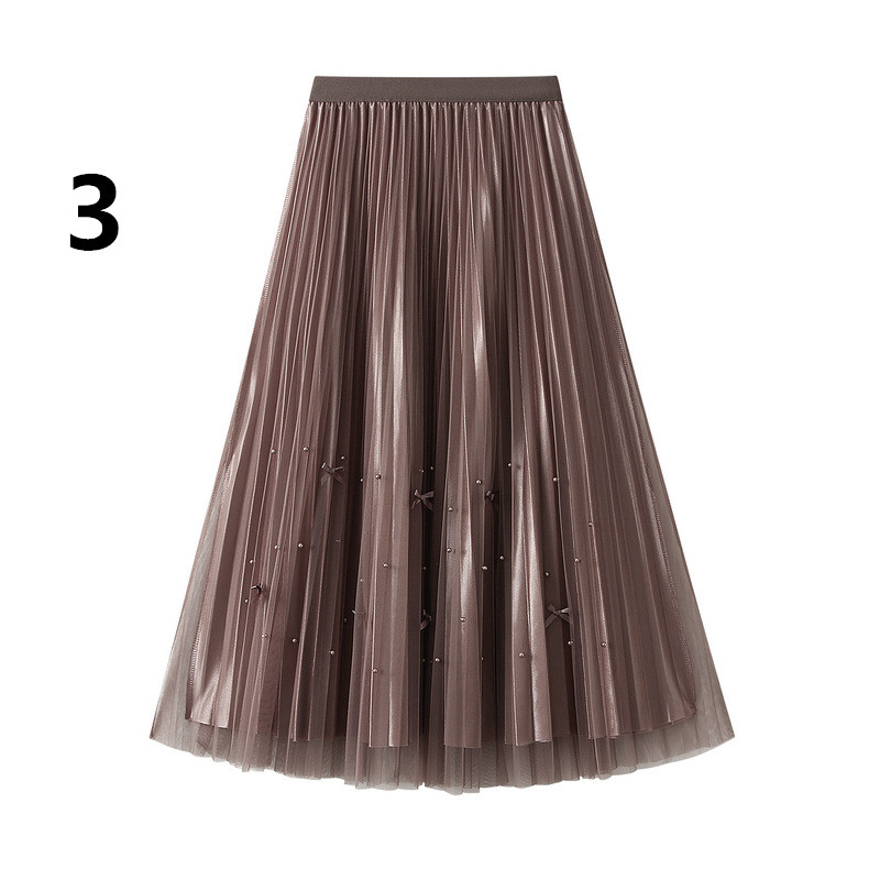 上品なチュール素材とプリーツデザインでエレガントな印象に。