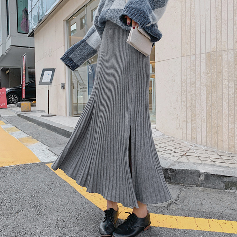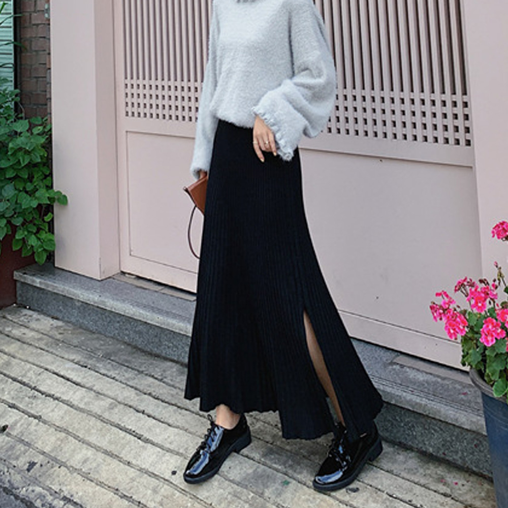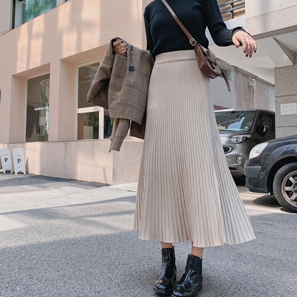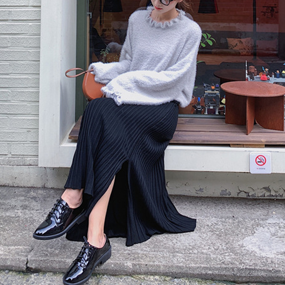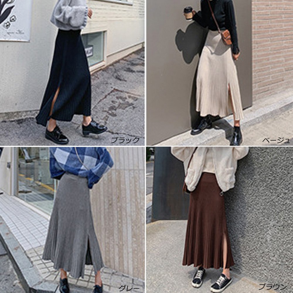 裾に向かって優雅に広がるニットプリーツスカートです。