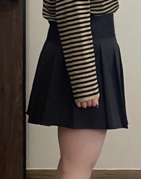 ミニ丈で軽やかな印象を与え、カジュアルからきれいめまで幅広いスタイリングに対応します。