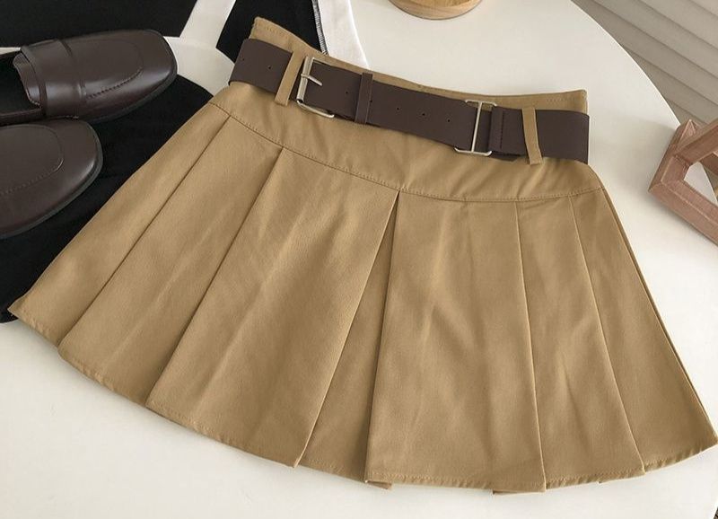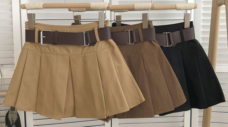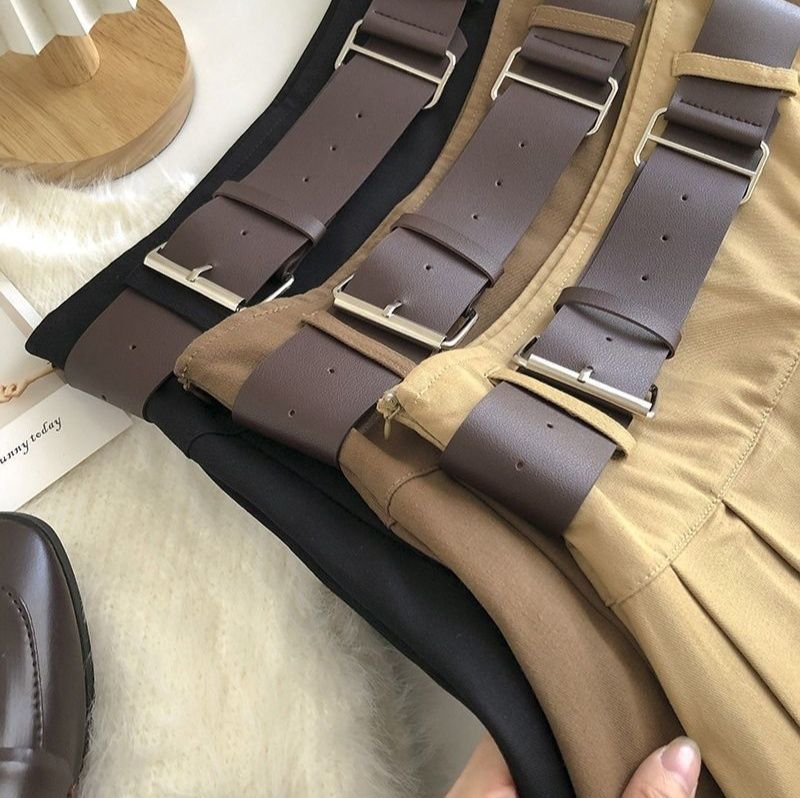 ウエストの太めのベルトがアクセントになったプリーツスカートです。