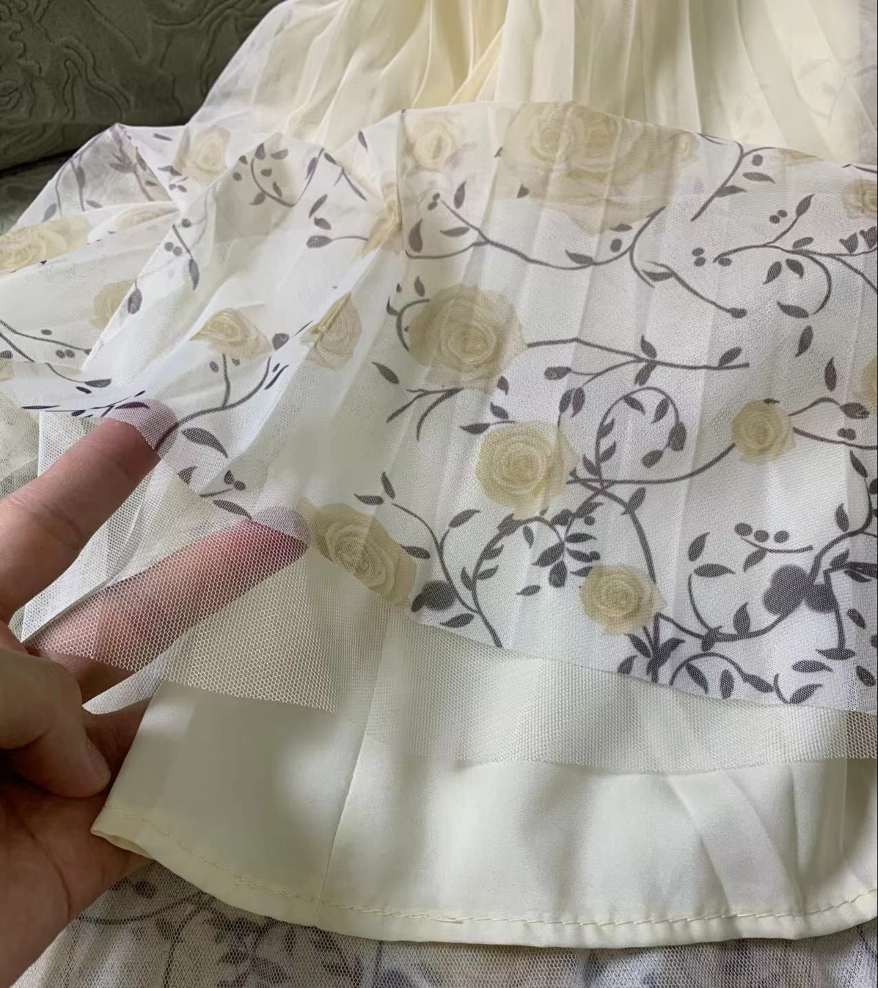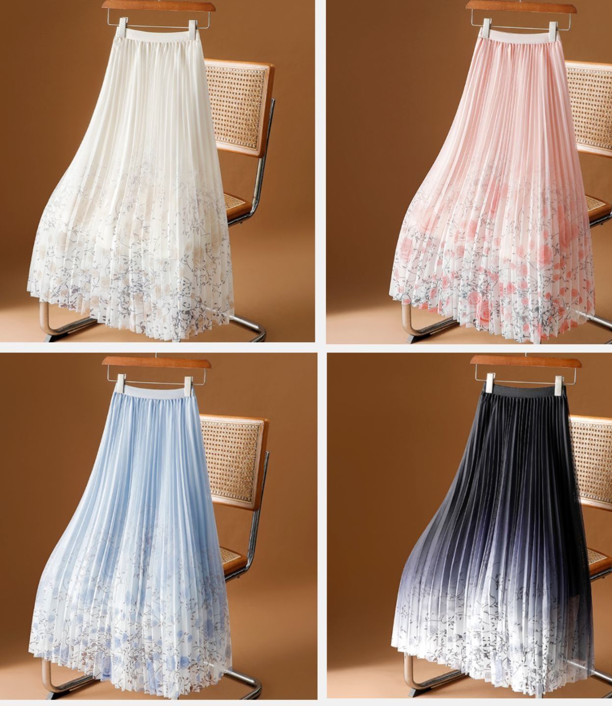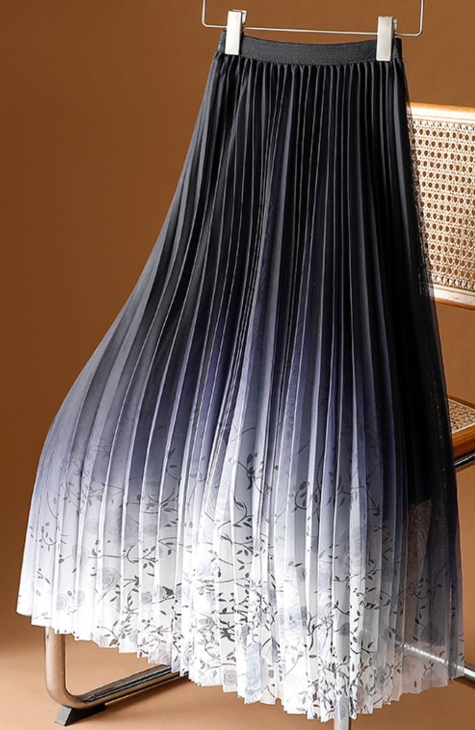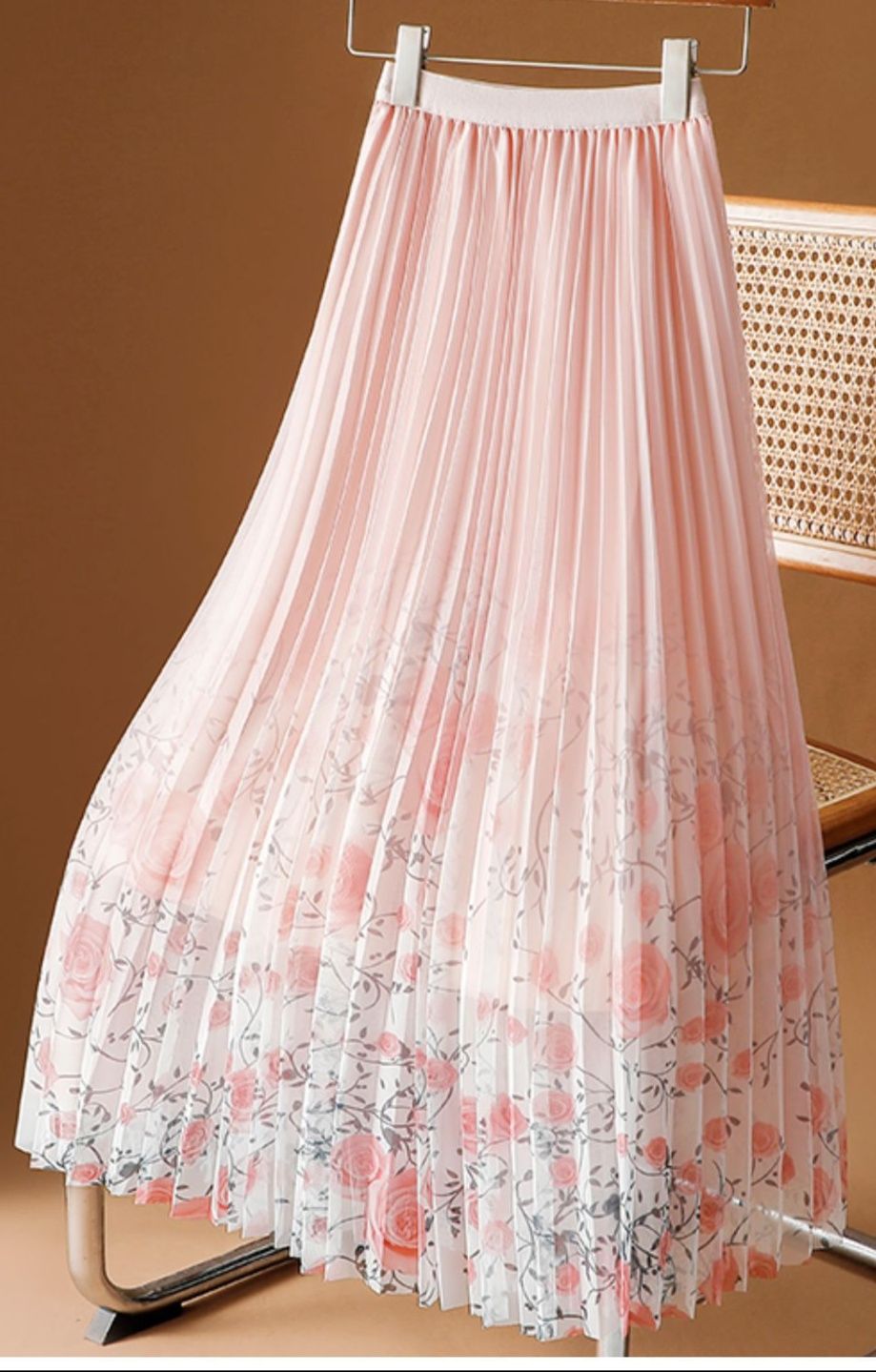 細かなプリーツが美しく揺れ動き、歩くたびに女性らしさを引き立てます。