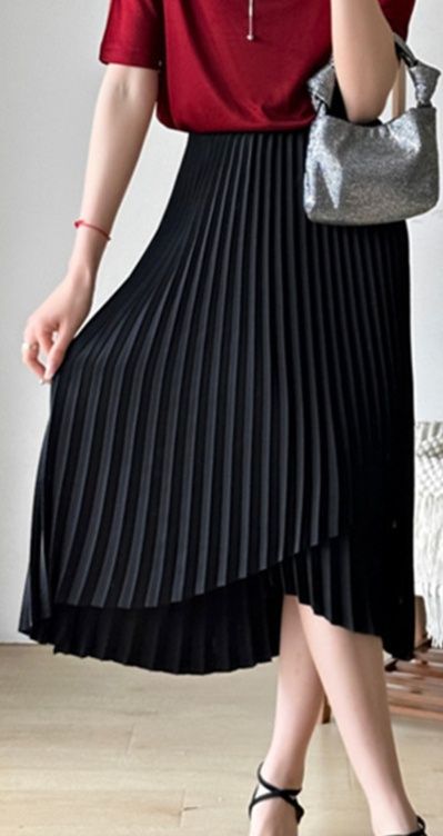 プリーツスカートならではの上品な揺れ感が女性らしさを引き立てます。