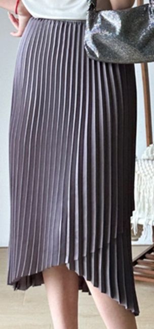 繊細な縦ラインのプリーツが美しい膝丈のスカートです。