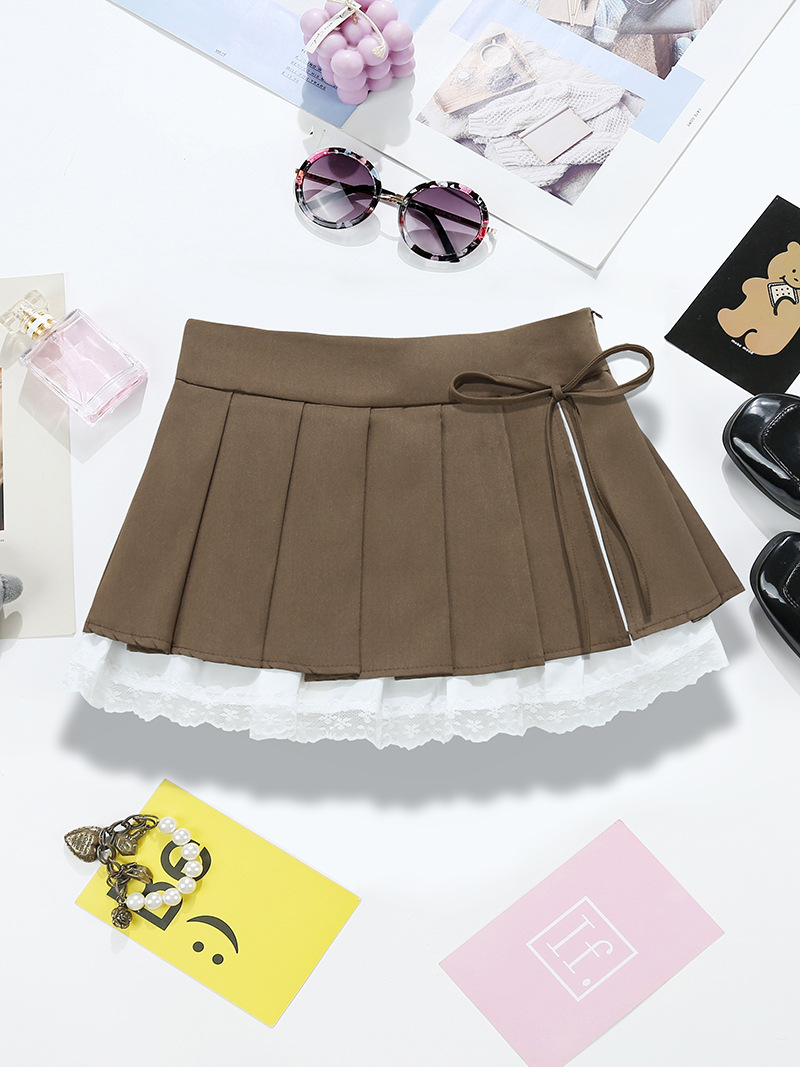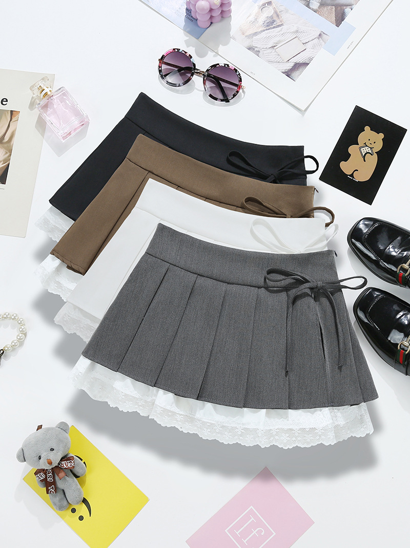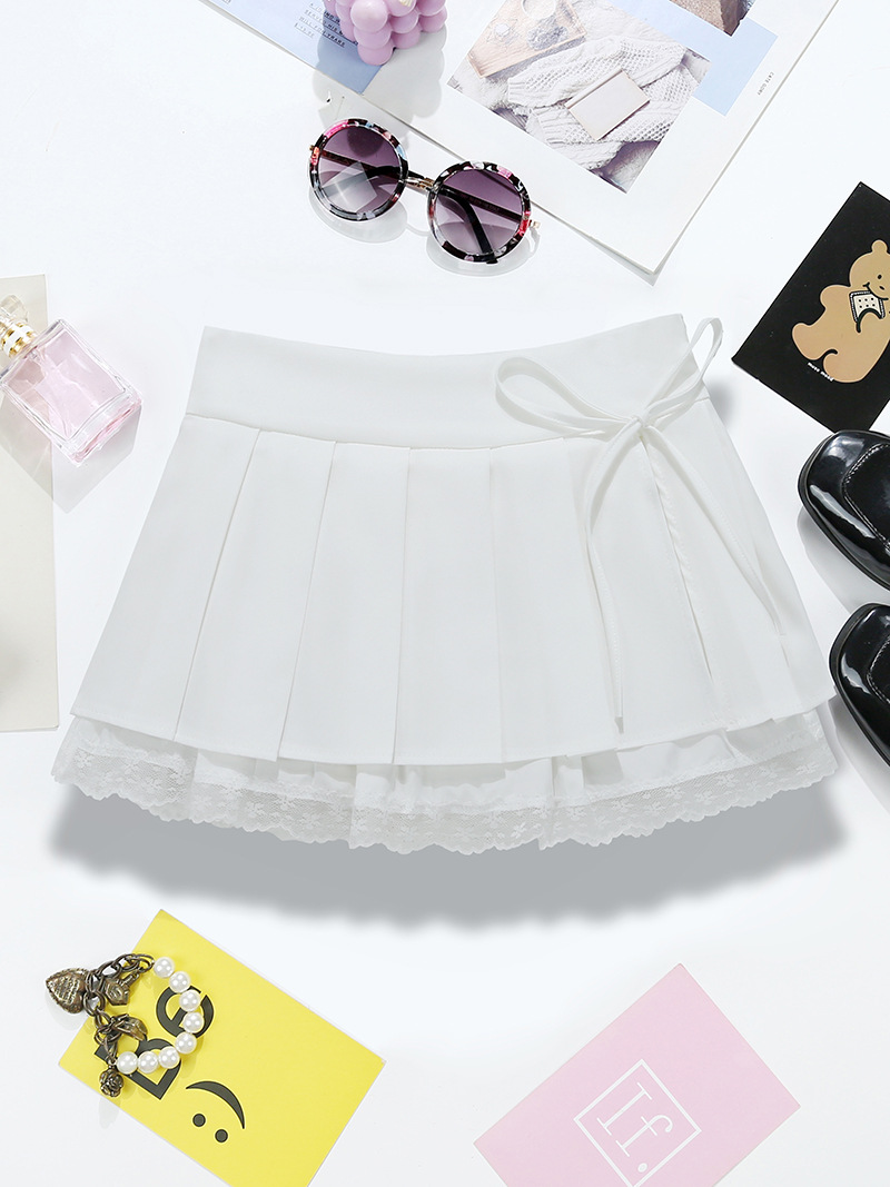 裾から覗く繊細なレースが可愛らしさを演出するプリーツスカートです。
