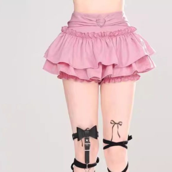 ウエストのハート型金具がアクセントになった二段フリルデザインのプリーツスカートです。